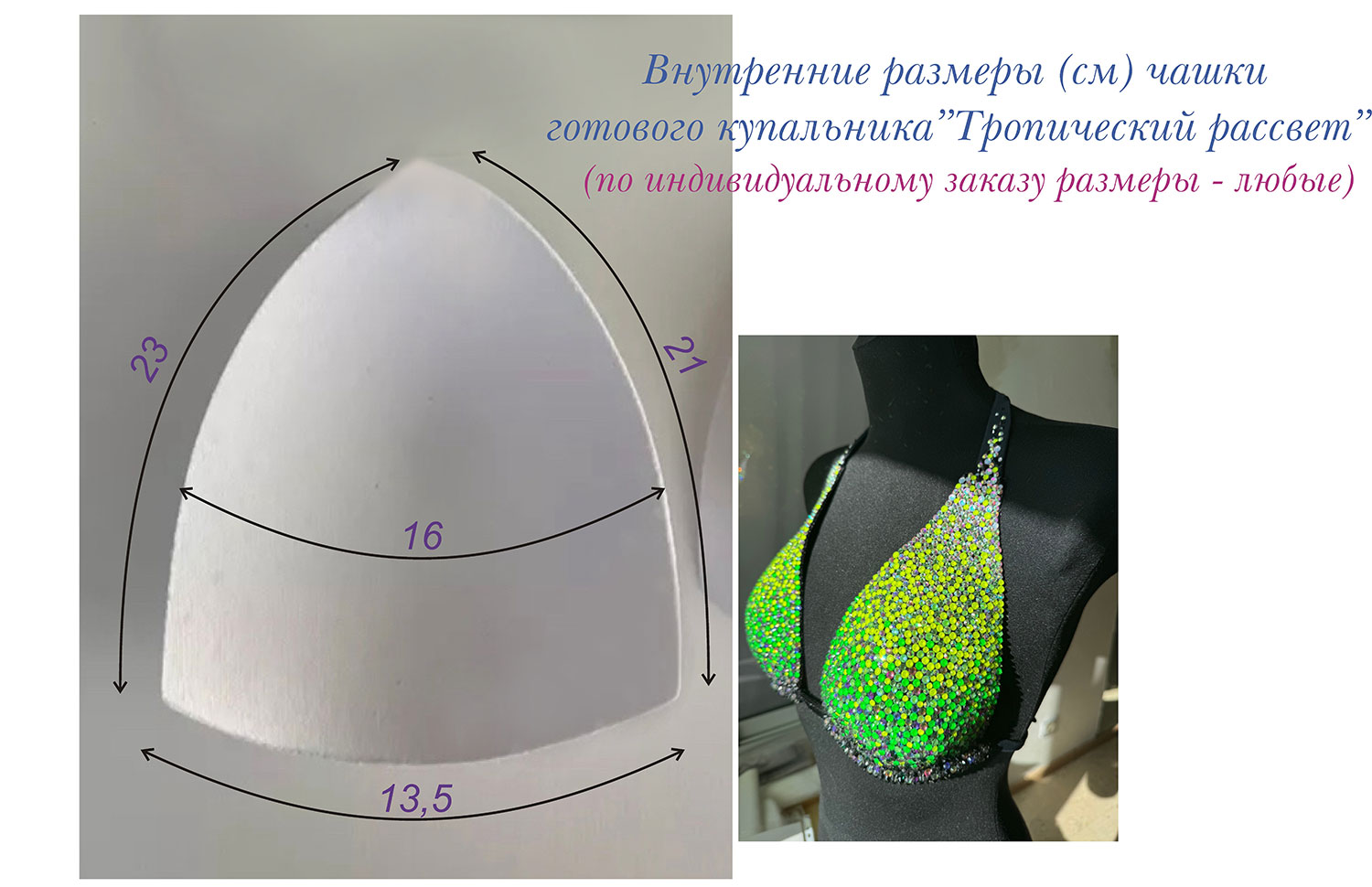 Облегчённый вариант исполнения — инкрустация стразами выполнена непосредственно на самом купальнике потому данная модель не является трансформером (здесь нет съёмных верхних чашек как в других моделях). Но под заказ так же может быть и трансформером в такой цветовой гамме или иной.