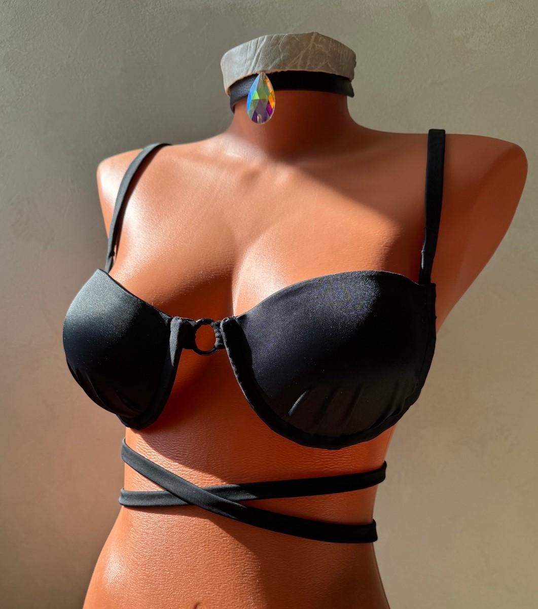 Сдержанный однотонный черный на «косточках» и он же вызывающе яркий со стразами — два в одном: 1.на будни (для заплыва в море или позагорать) и 2.на торжество с жакетом или на пенную вечеринку и ночные disco party (как главный элемент образа) ! Мерцает даже в темноте.